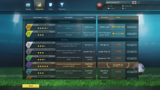 There’s much more involved in the background too if you want to experience the game in full and not just with your squad. Some football games fall foul of only letting you manage your team, here, Football, Tactics & Glory allows you to upgrade your training facility, stadium and a range of other services. You can, therefore, choose whether to focus on youth recruitment, player growth or even better negotiation for top stars. All these factors allow you to have a customisable experience where you can decide what type of game you have.
